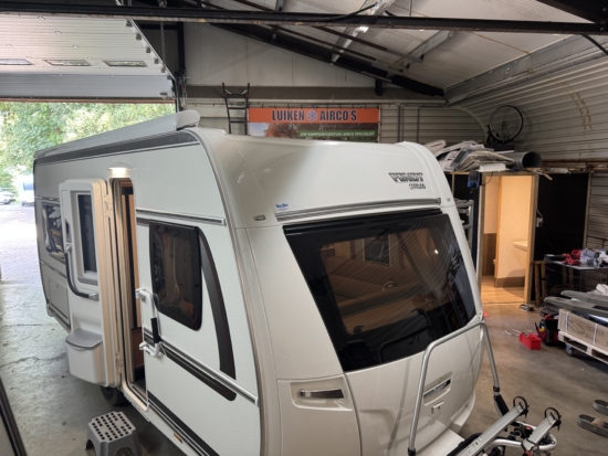 Een Truma Aventa Comfort 2G geplaatst op een Fendt Opal 465. In het midden, boven de as, een nieuwe opening aangebracht.