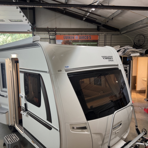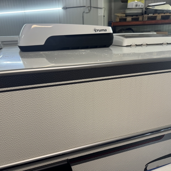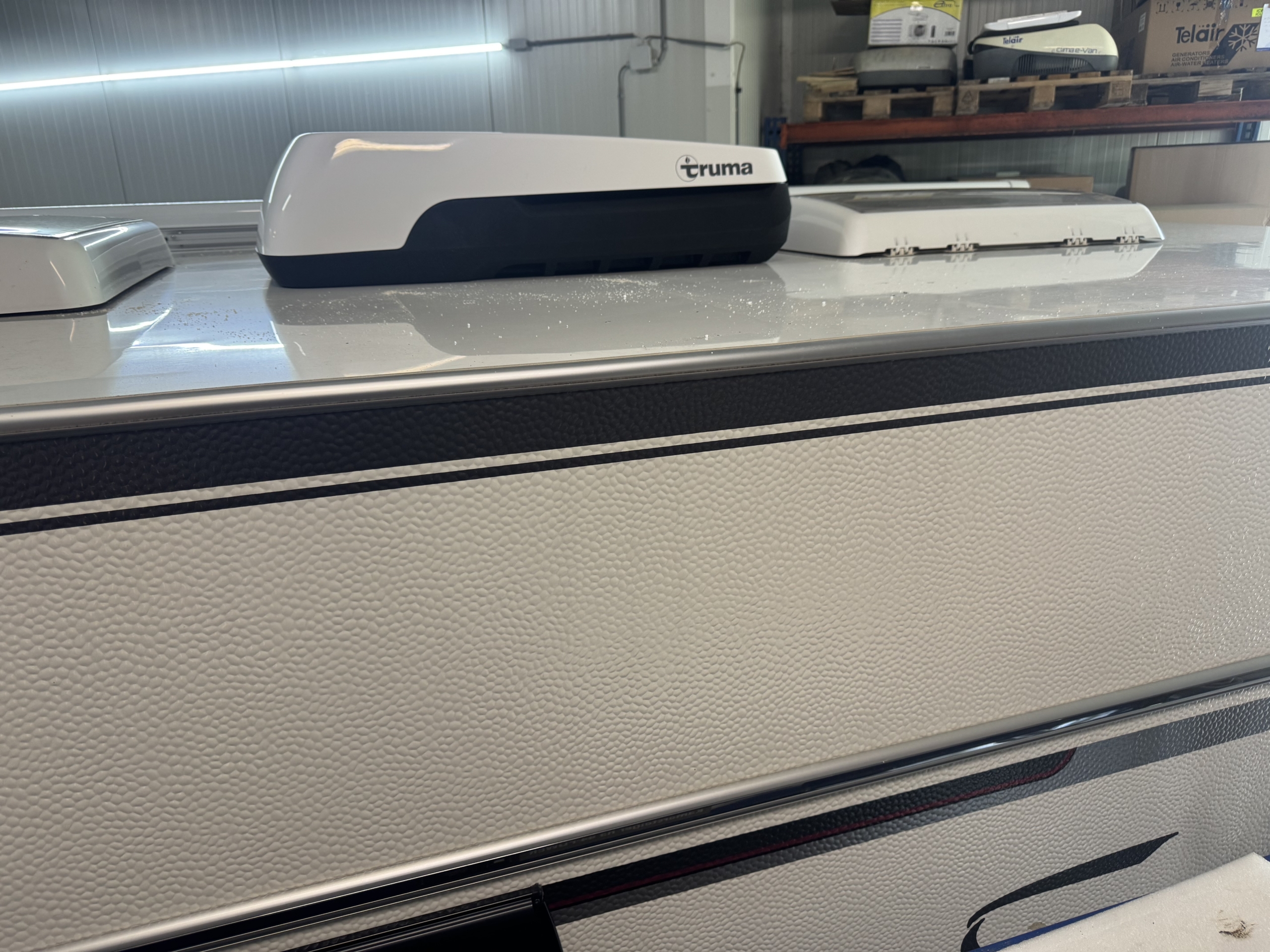 Een Truma Aventa Comfort 2G geplaatst op een Fendt Opal 465. In het midden, boven de as, een nieuwe opening aangebracht.