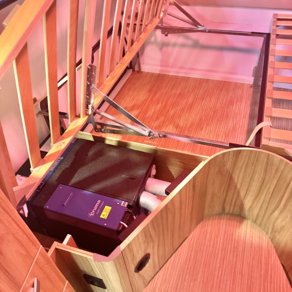 Onder het voeteind van het linker bed de bankairco geplaatst.
