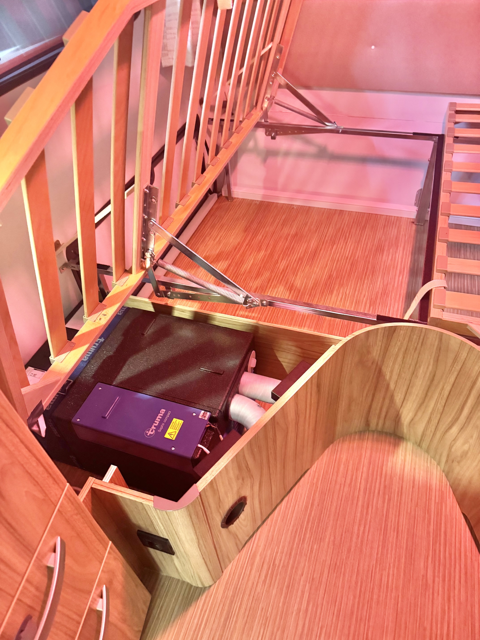 Een Truma Saphir Compact bankairco geplaatst in een Eriba Feeling 442.