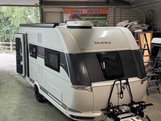 Een Webasto Cool Top Trail 24 geplaatst op een Hobby 495 UL. Hier is door de kant gekozen voor het voorste dakraam ivm weinig kogeldruk.
