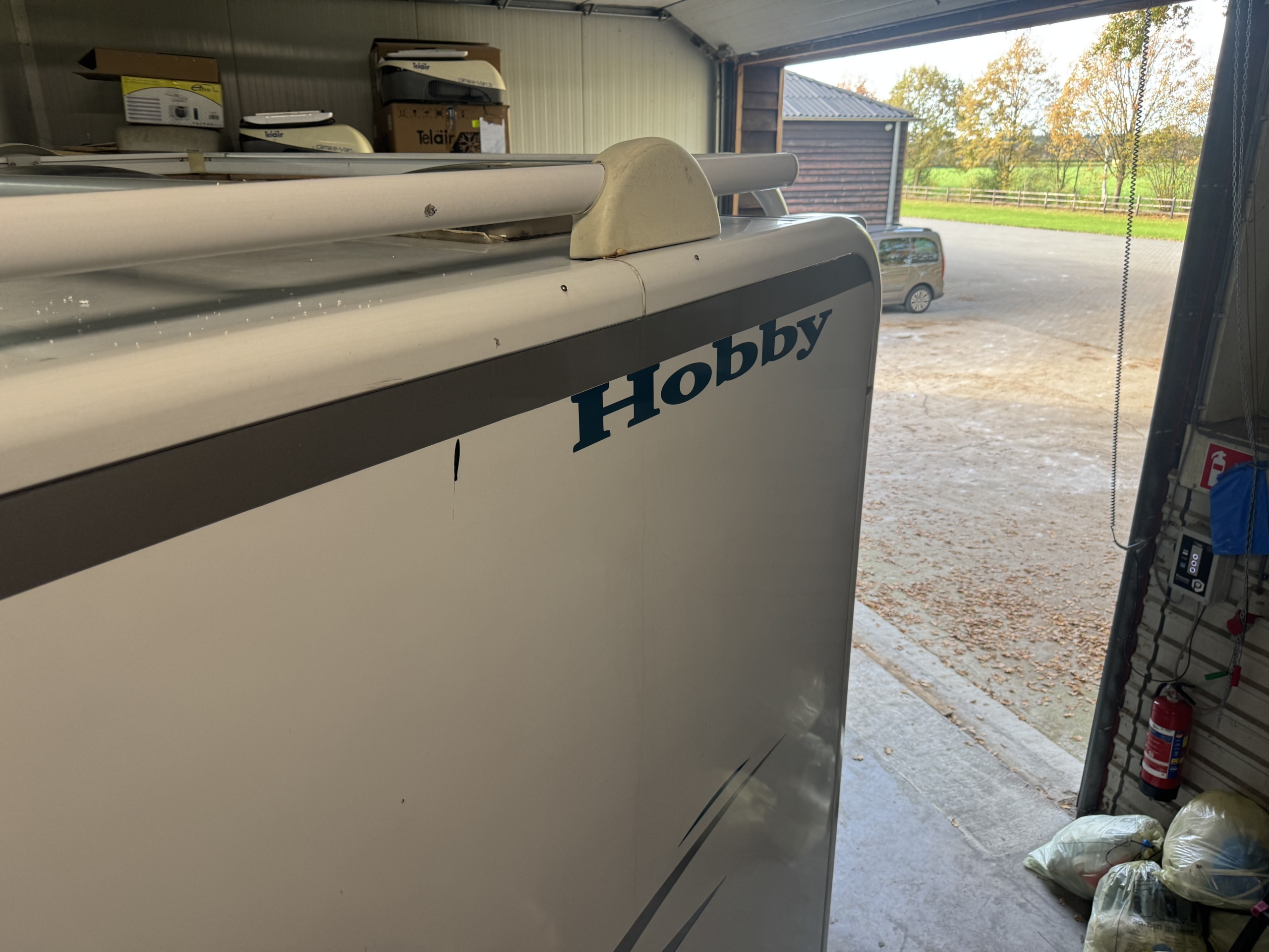 Een Telair Dualklima 8400H geplaatst op Hobby 595 Alkoof camper.