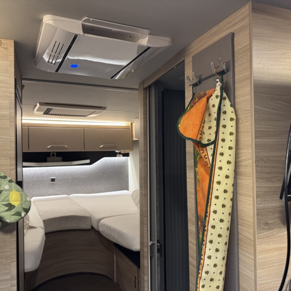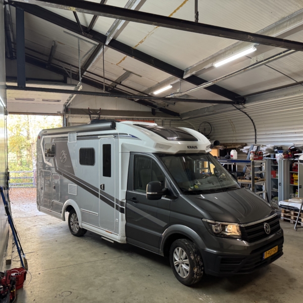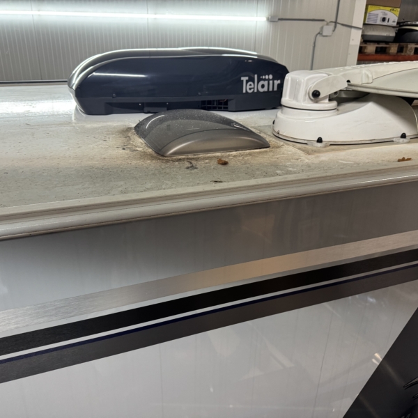 Een Telair Silent Plus 8100H Black geplaatst op een Knaus VAN TI PLUS Platium Selection.