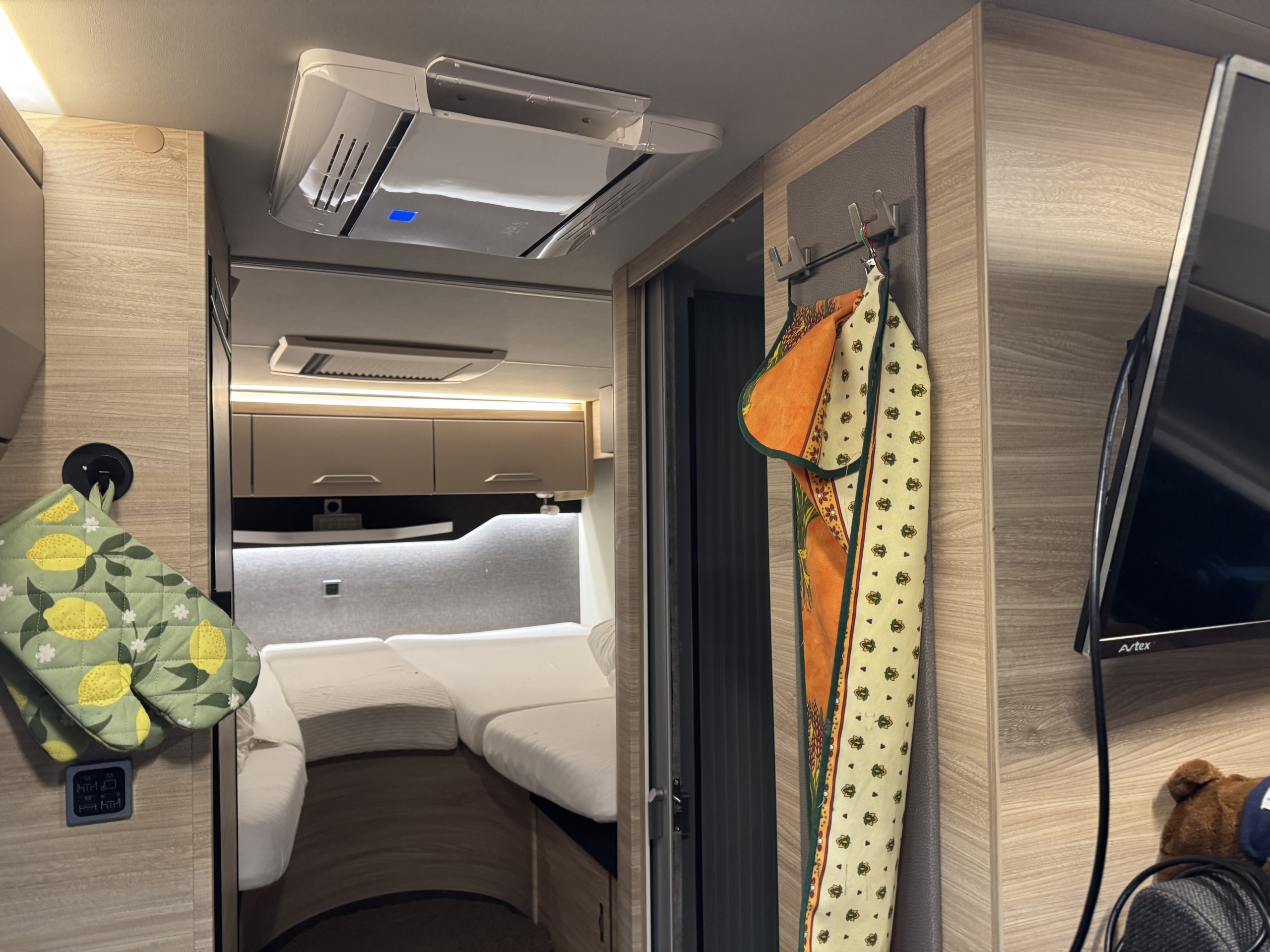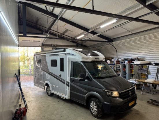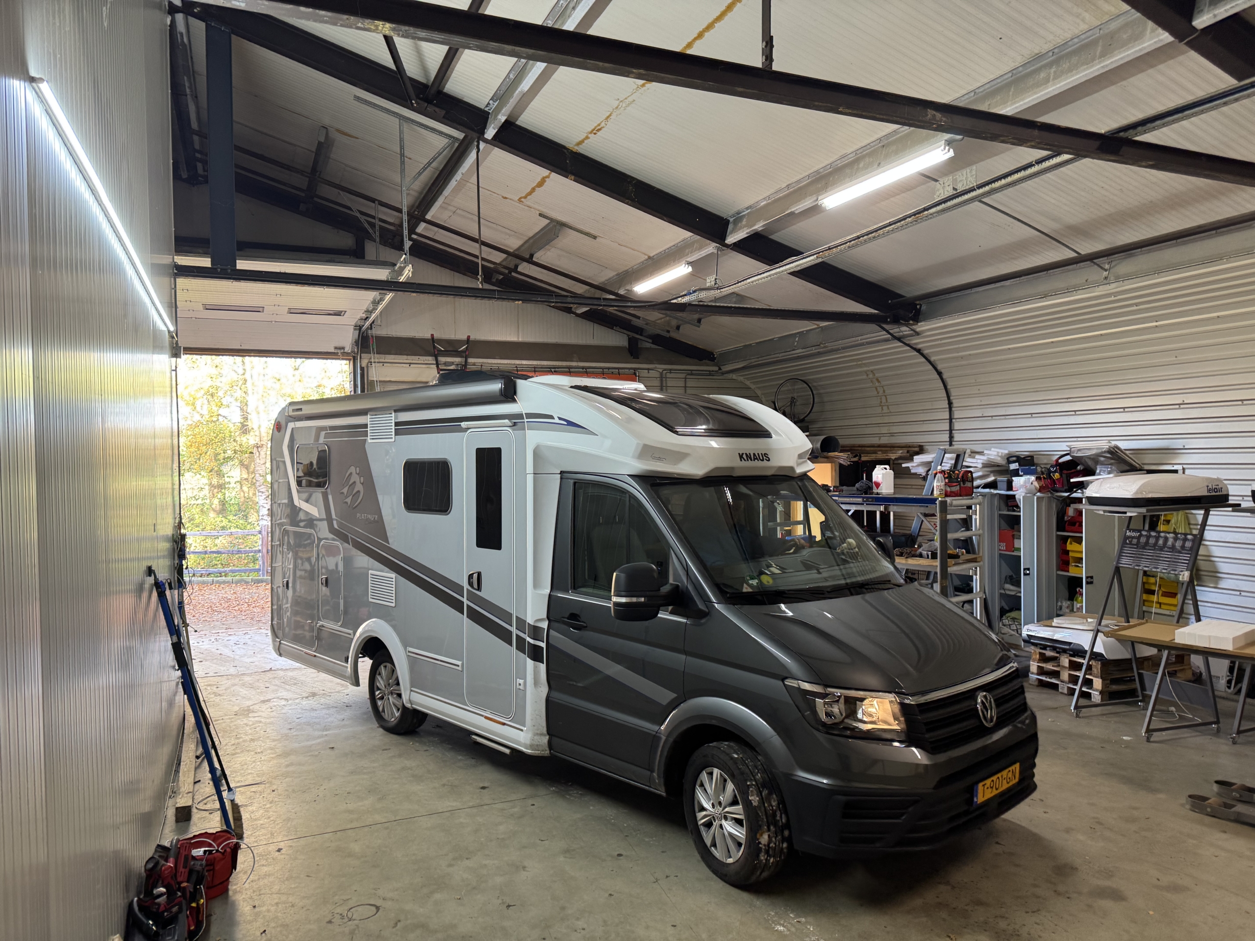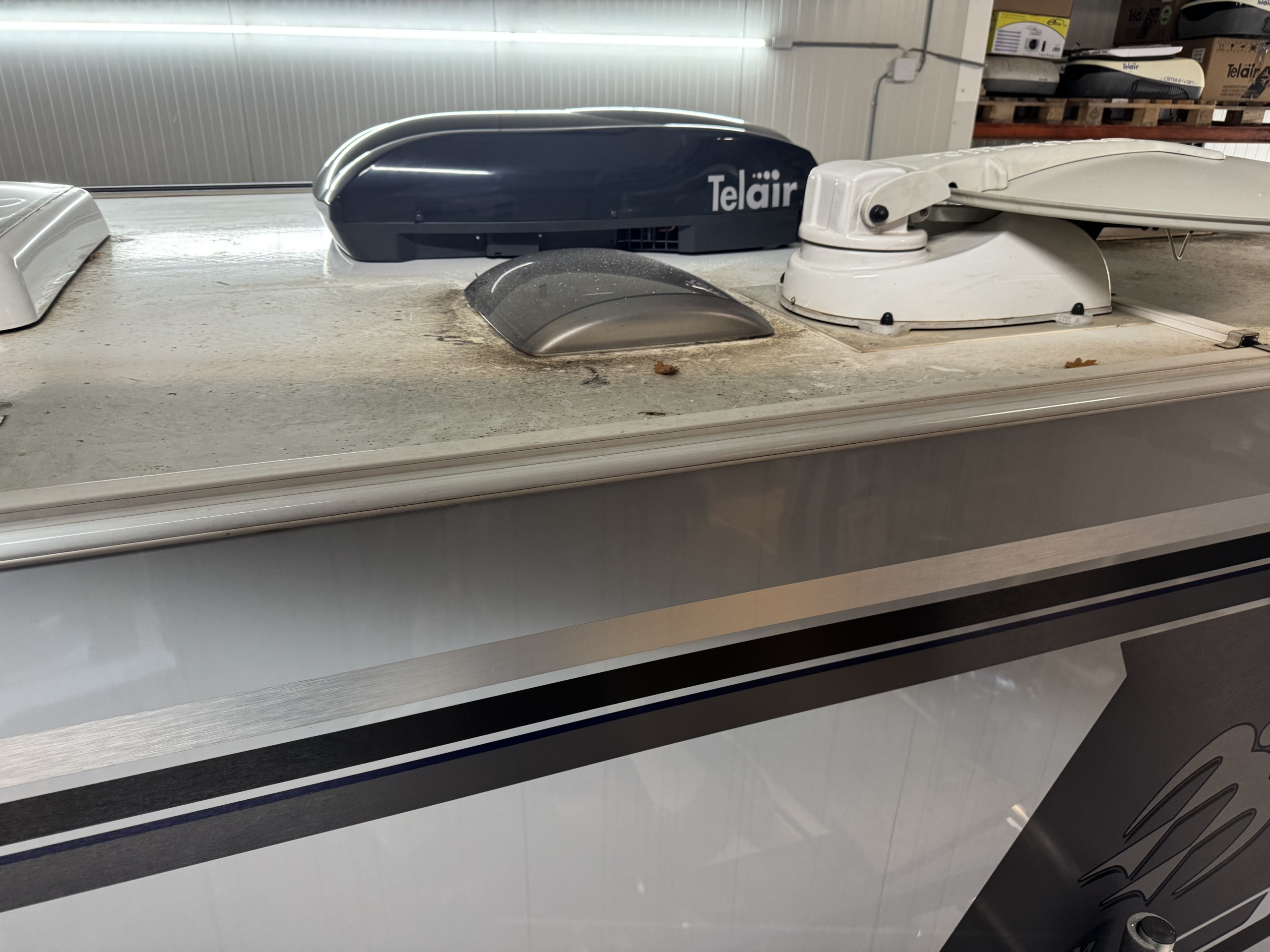 Een Telair Silent Plus 8100H Black geplaatst op een Knaus VAN TI PLUS Platium Selection.