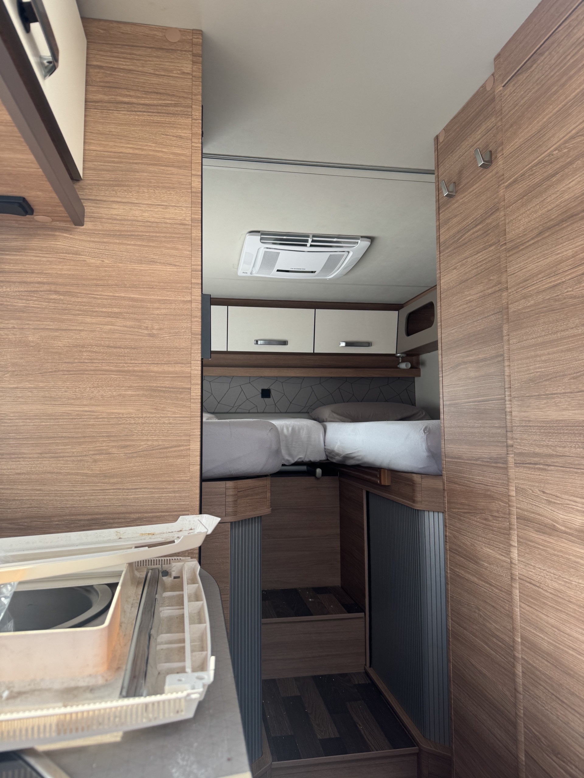 Een aanpassing gemaakt aan het binnenkader dat de geconditioneerde lucht uit de airco meer naar voren in de camper blaast en minder naar achteren. Dit omdat de airco vrij achterop zit.