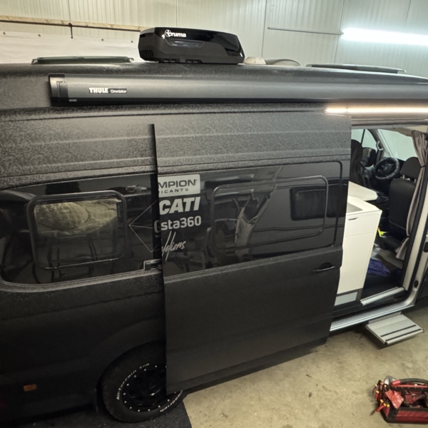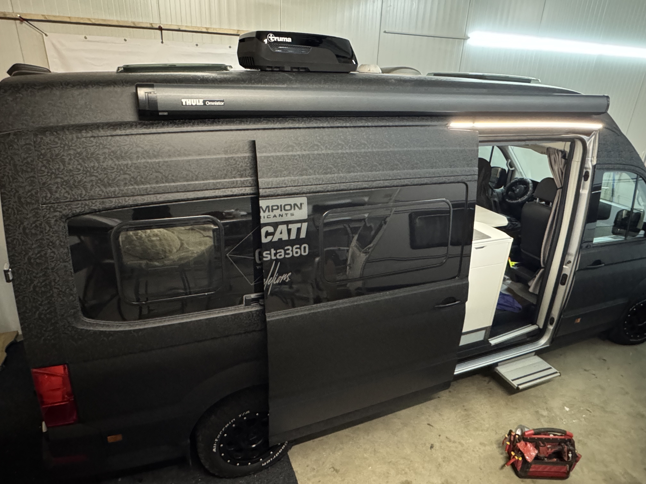 Een Truma Aventa Compact Plus 2G Black geplaatst op een Volkswagen Grand California 680.