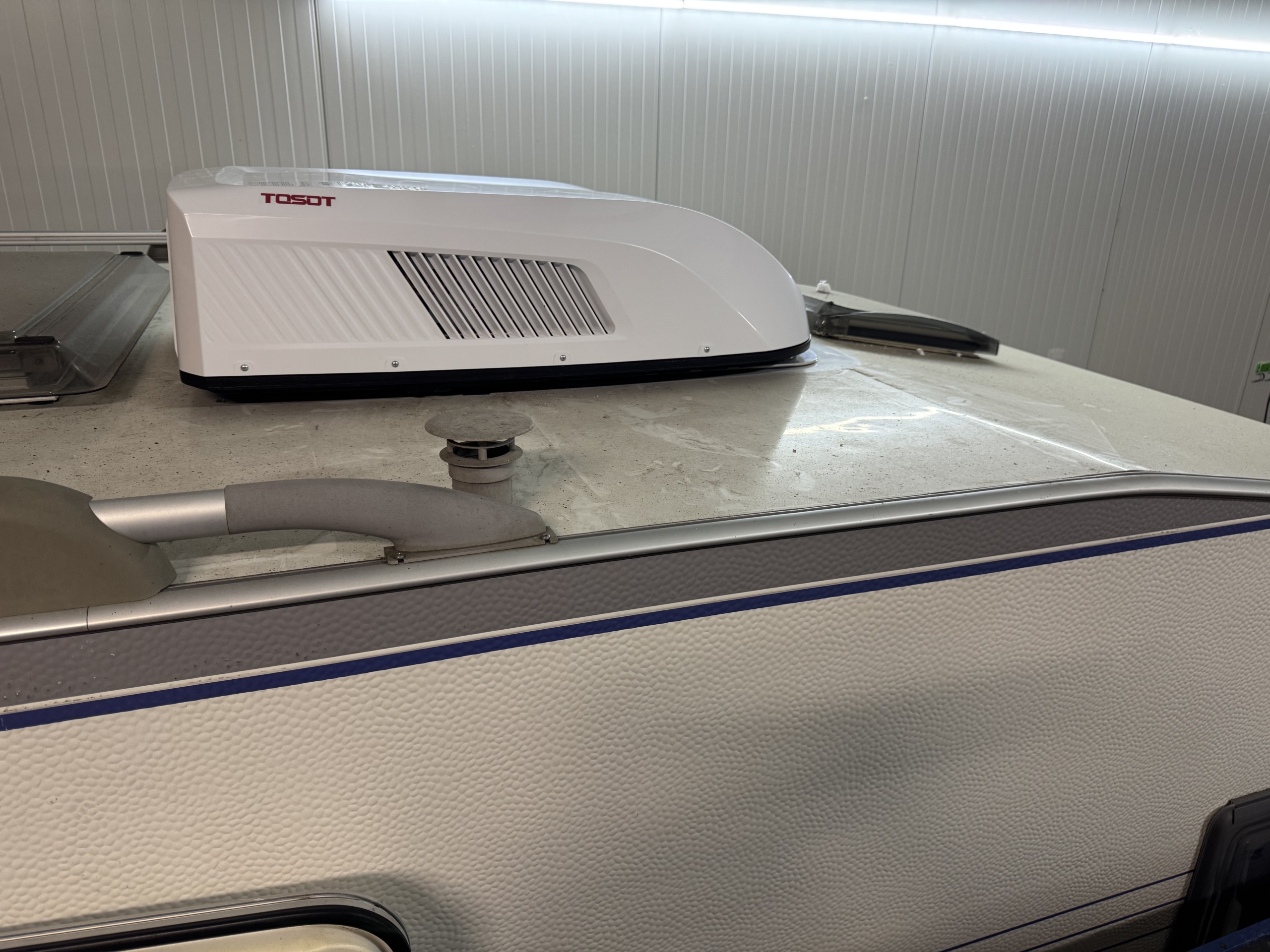 Een Tosot (Gree) Shark IV Inverter geplaatst op een HOBBY De Luxe Easy 460 UFE.