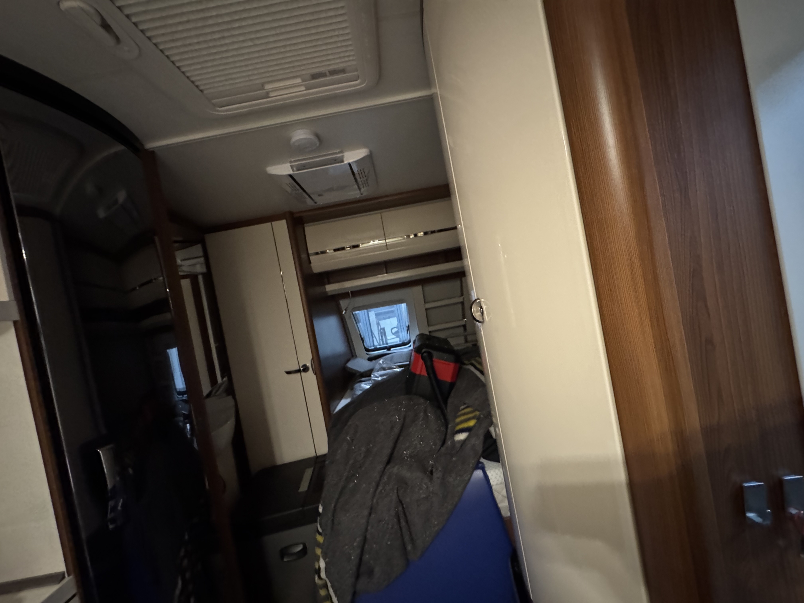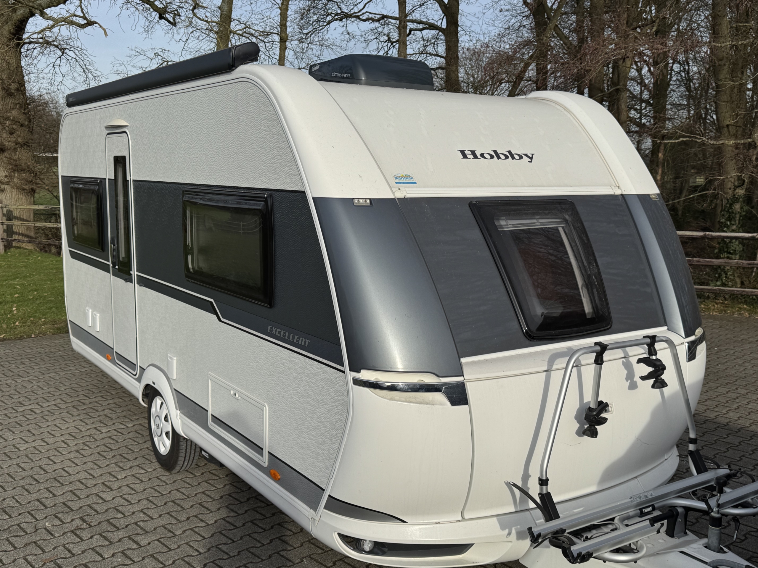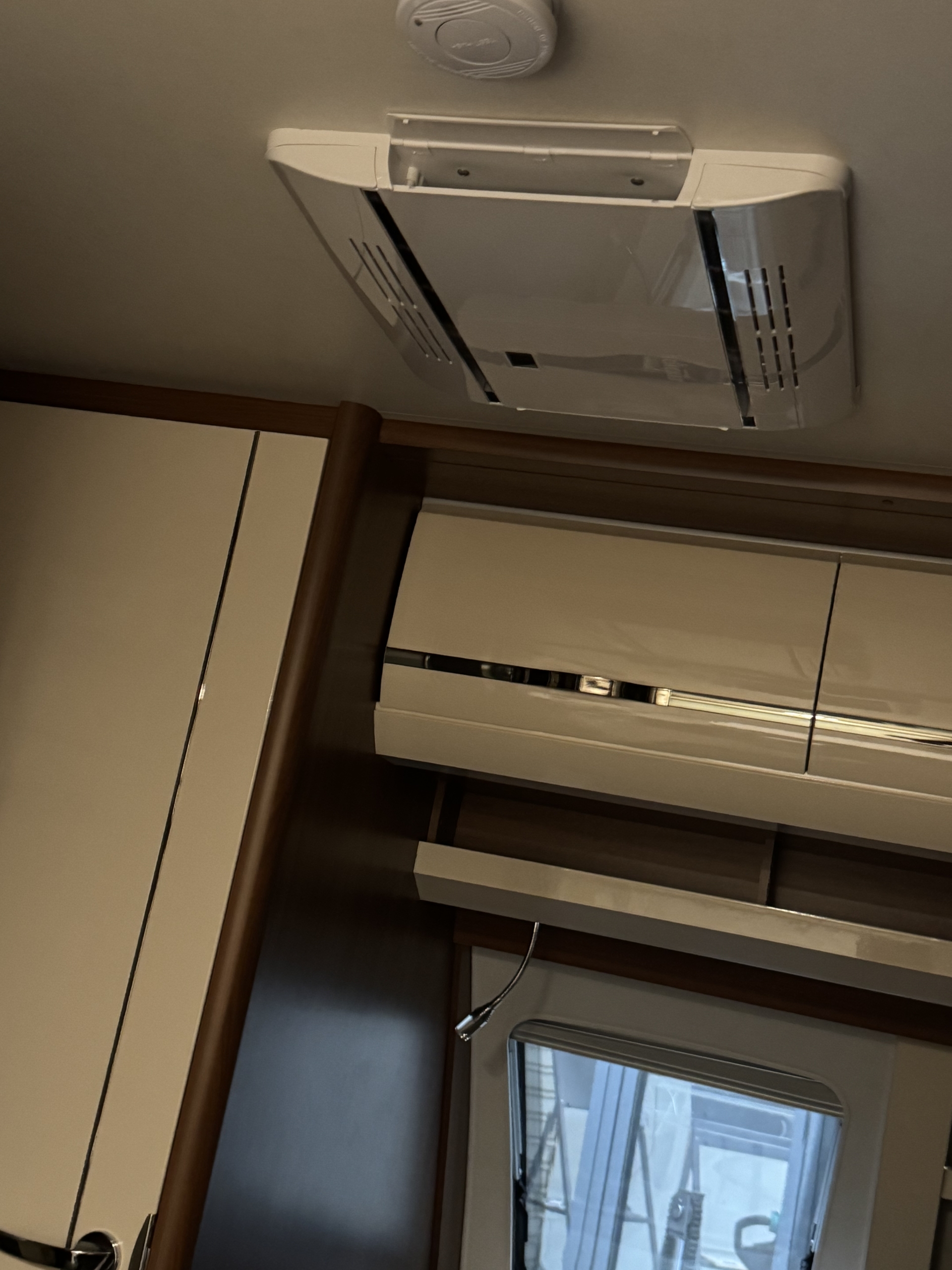 Een Telair Clima E-Van 7400 Black geplaatst op een Hobby Excellent 460 UFE. Het voorste dakraam uitgewisseld voor deze dakairco.
