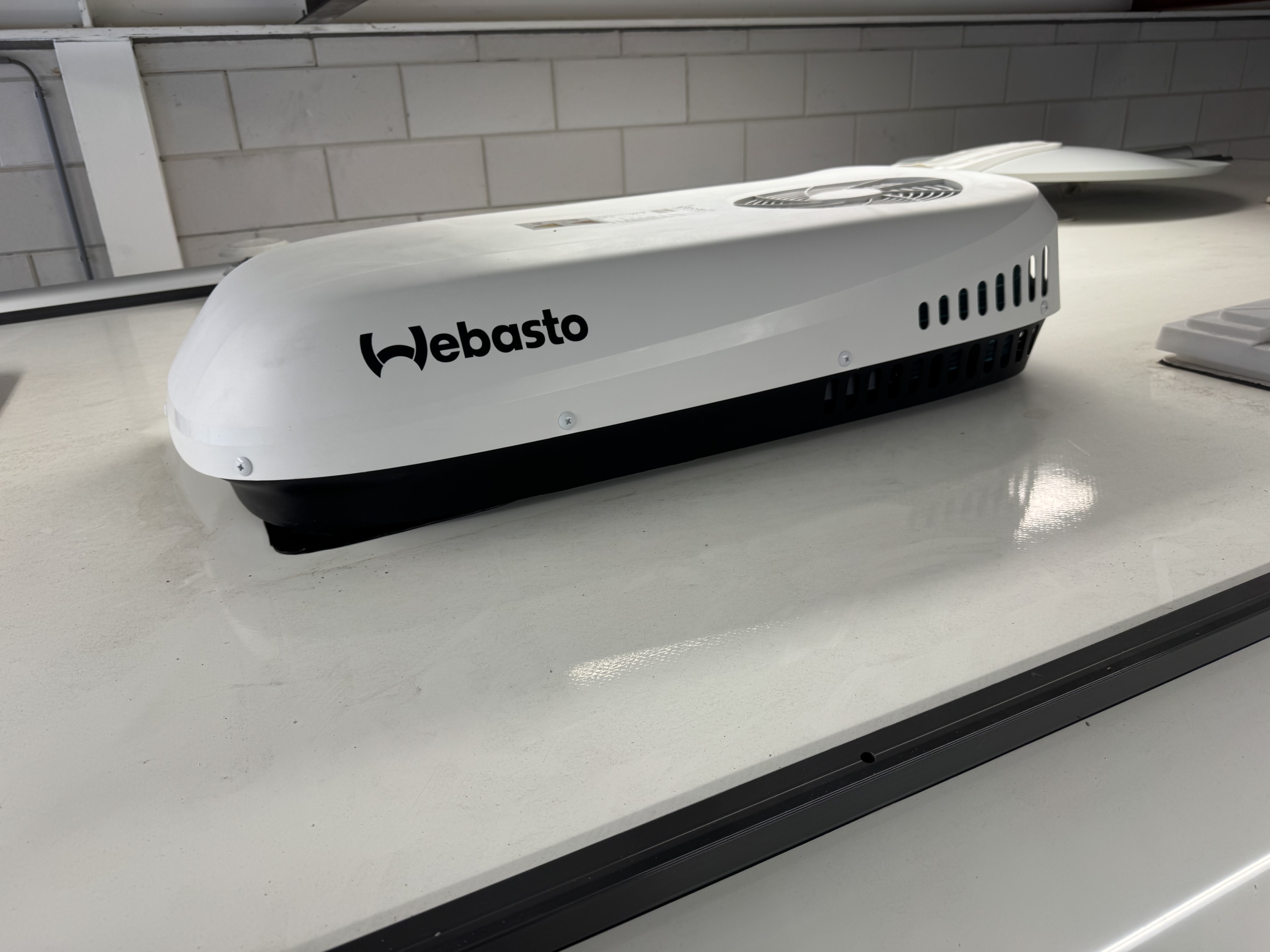 Een Webasto Cool Top Trail 24 geplaatst op een Carthago Chic-C Line 4.9 I LE. Het dakraam/ventilator boven de keuken verwisseld voor de dakairco.