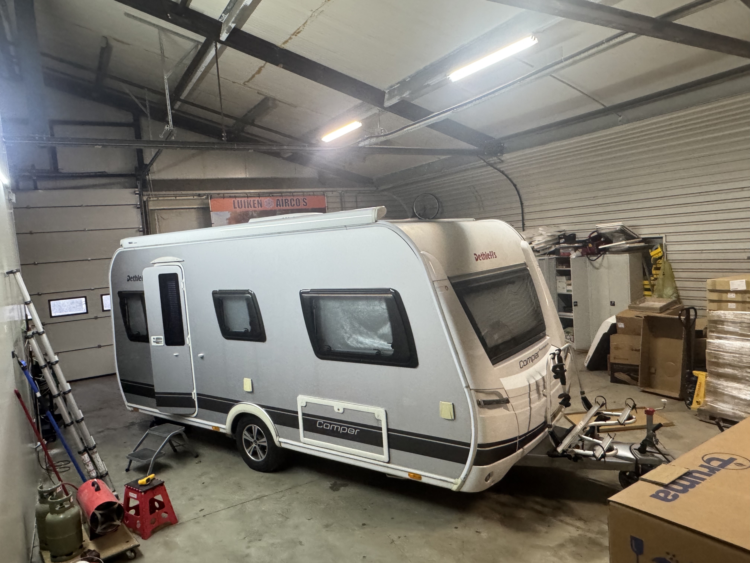 Een Webasto Cool Top Trail 24 geplaatst op een Dethleffs Camper 460 EL Avantgarde.