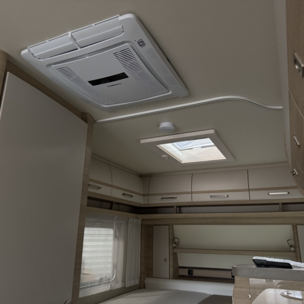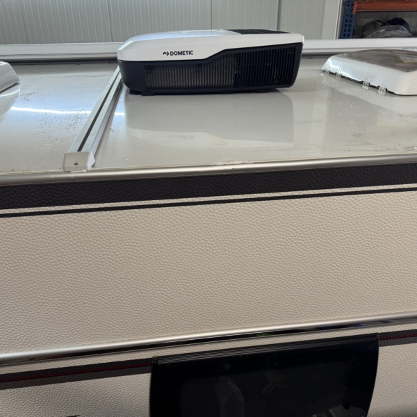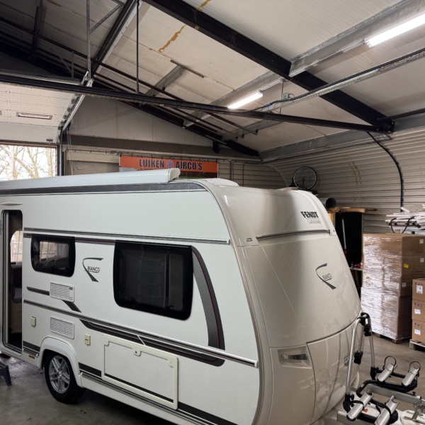 Een Dometic FJX4 2200 geplaatst op een Fendt Bianco 465 TG. In het midden van de caravan een nieuwe opening aangebracht.