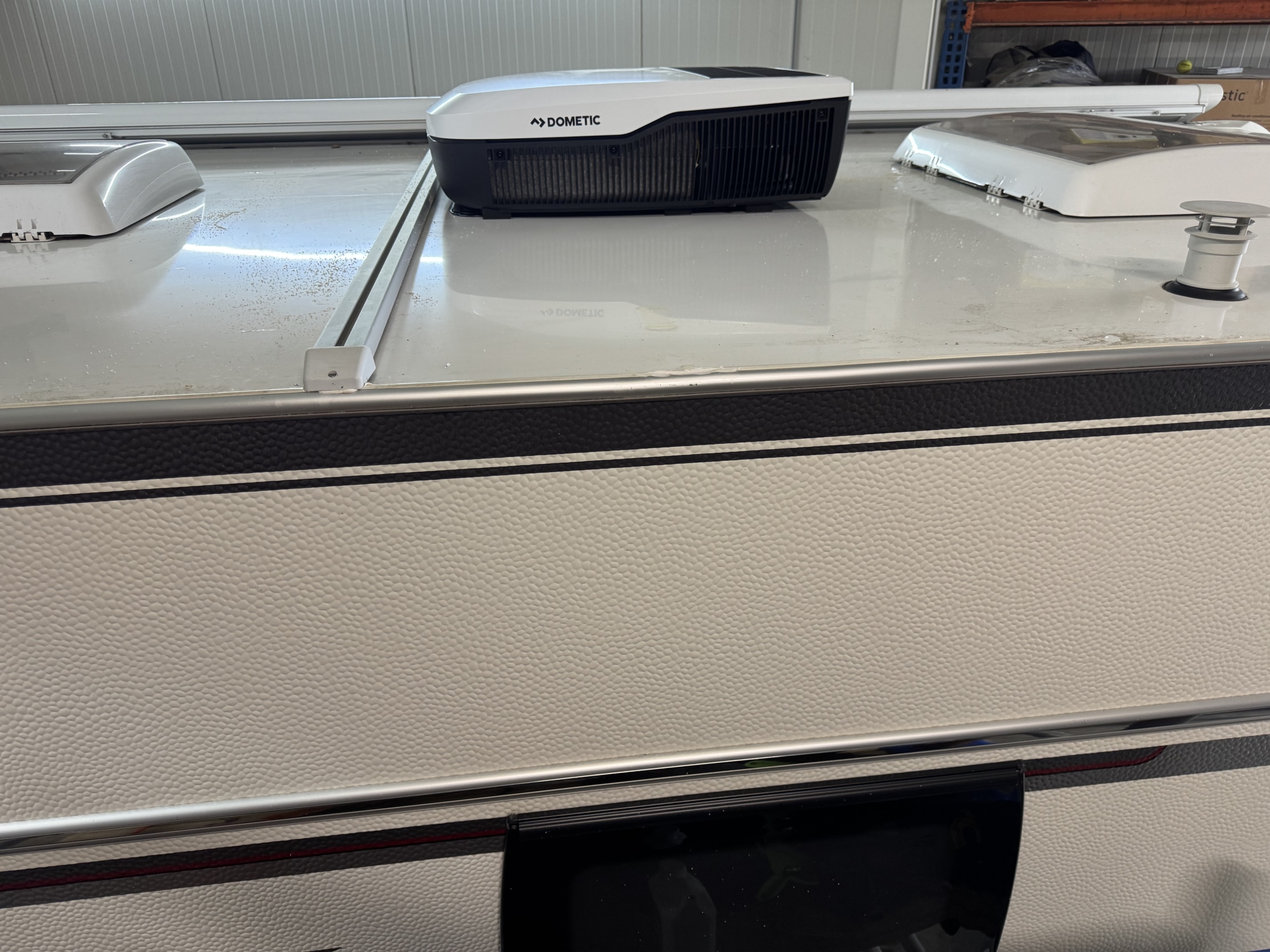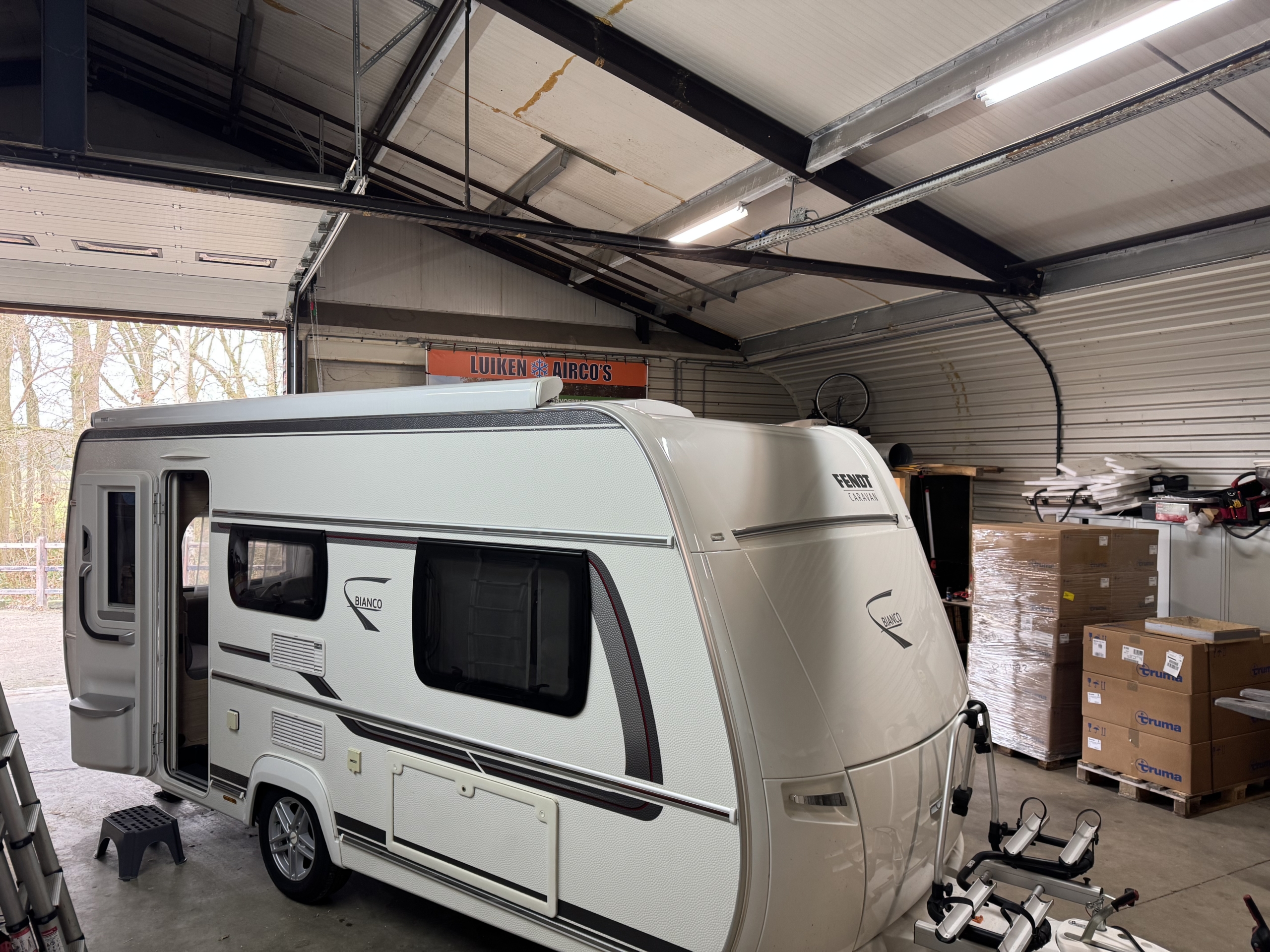 Een Dometic FJX4 2200 geplaatst op een Fendt Bianco 465 TG. In het midden van de caravan een nieuwe opening aangebracht.