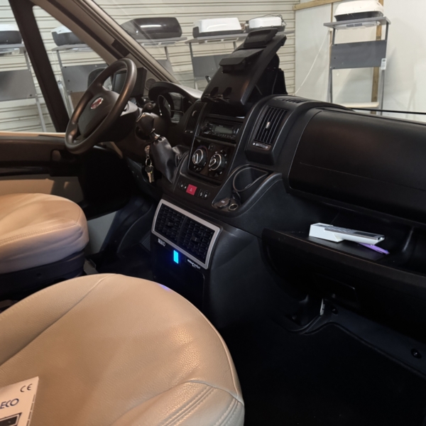 Als altijd gaat het binnenunit volledig op in het dashboard van de camper.