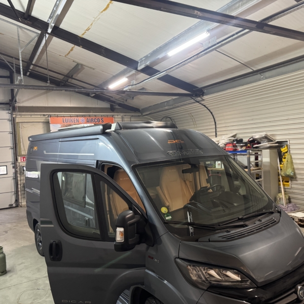 Een Teleco Ultra Comfort 6000H geplaatst in een Font Vendôme Leadercamp buscamper.