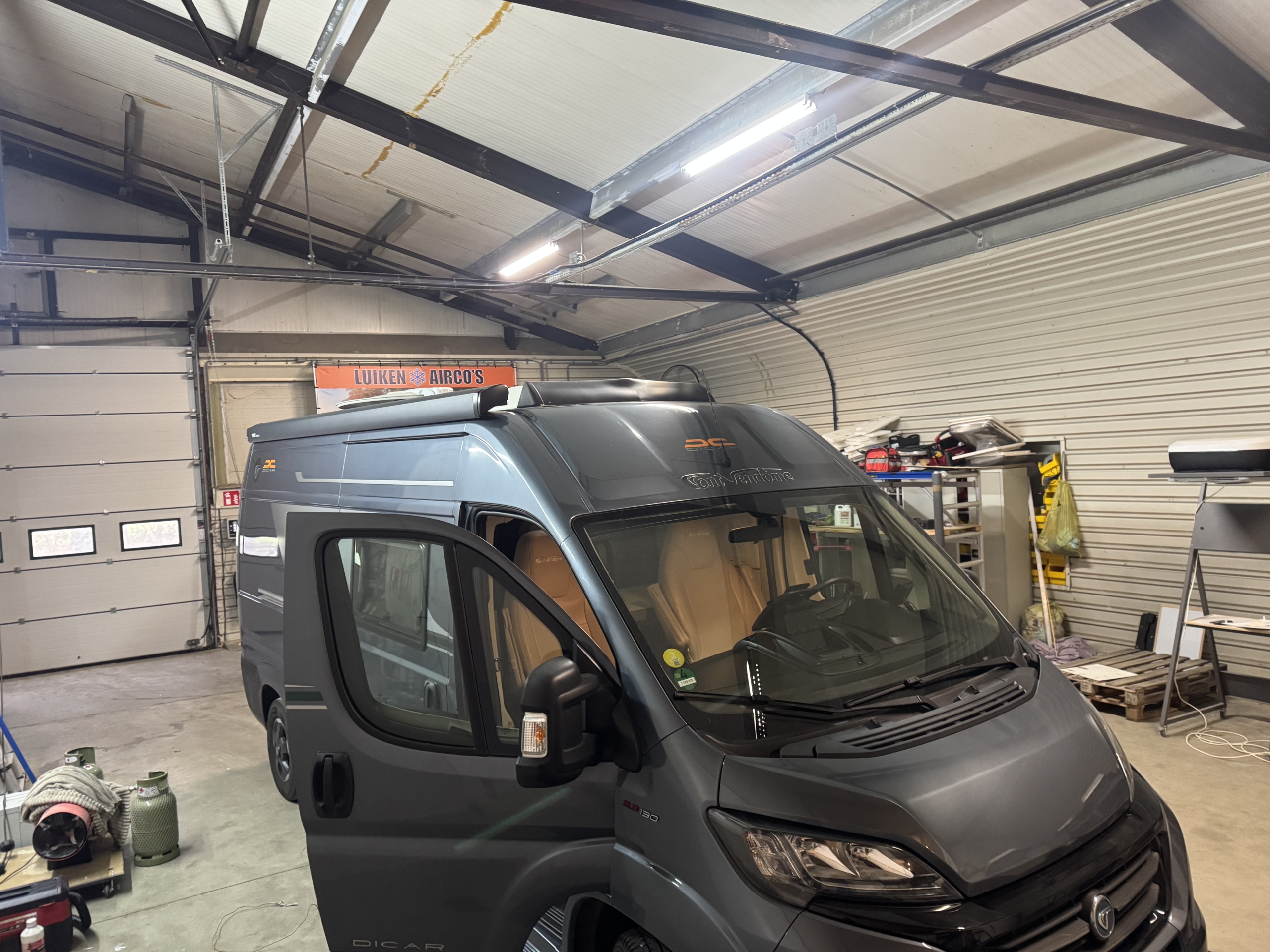 Als altijd gaat het binnenunit volledig op in het dashboard van de camper.
