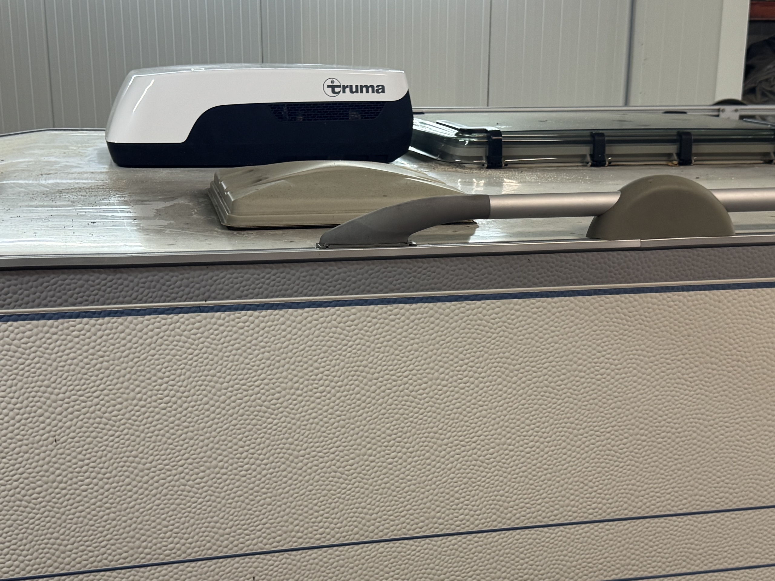 Een Truma Aventa Compact Plus 2G geplaatst op een Hobby 450 UB De Luxe Easy. Caravan is van 2000.