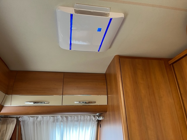 Het voorste dakraam uitgewisseld voor deze dakairco.