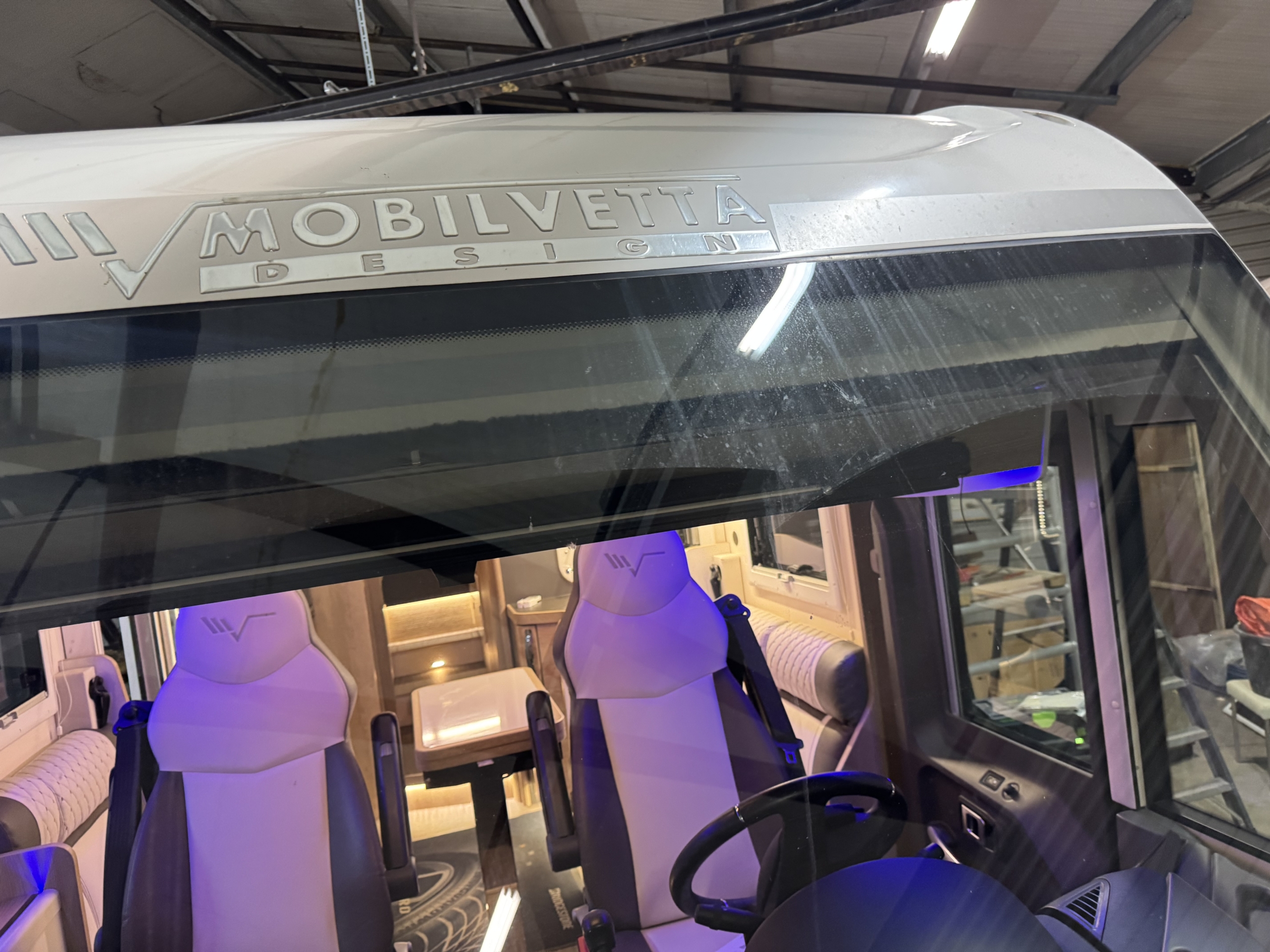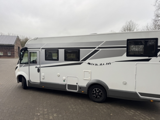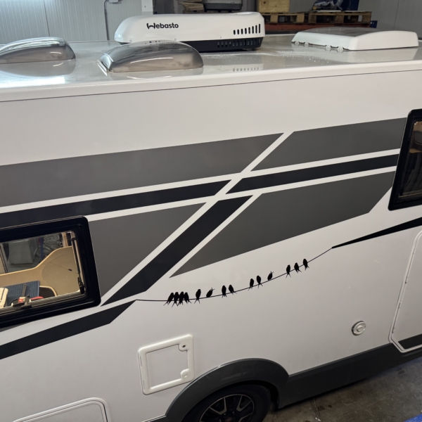 Een Webasto Cool Top Trail 24 geplaatst op een Mobilvetta KEA I86. Een nieuwe opening gemaakt in het gangpad.