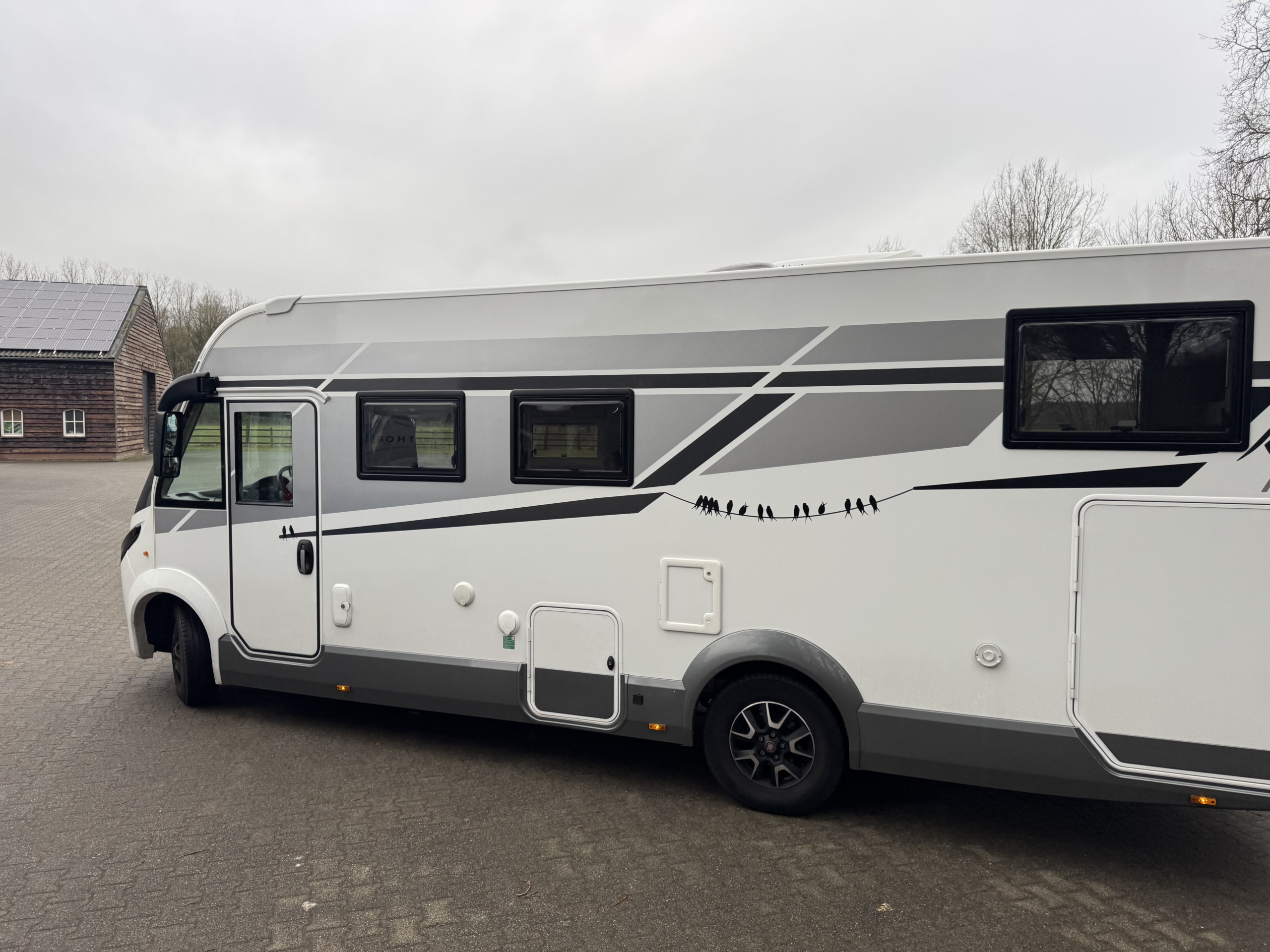 Als altijd is de stroomkabel keurig door het dak aangebracht. Geen gootjes.