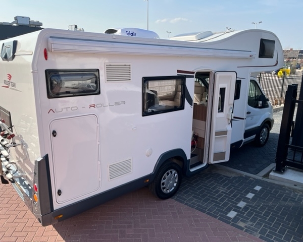 Een Telair Silent Plus 8100H geplaatst op een Rollerteam Auto-Roller of Kronos 277 M. IN het midden van de camper een nieuwe opening aangebracht en deze voorzien van een houten frame ter versteviging.