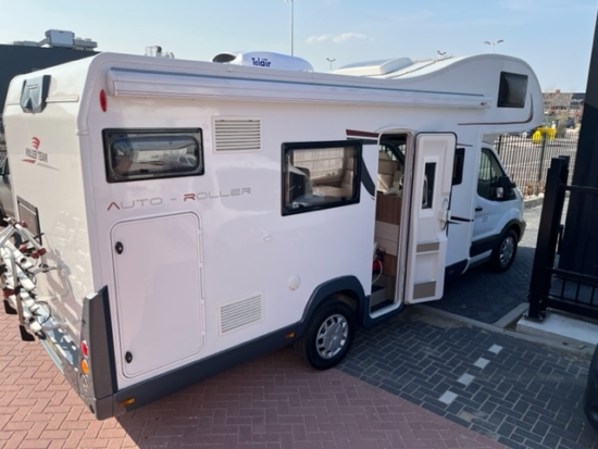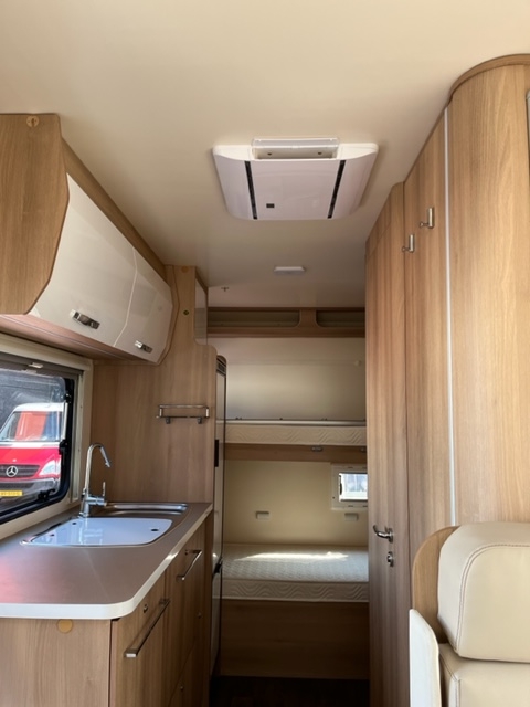 Een Telair Silent Plus 8100H geplaatst op een Rollerteam Auto-Roller of Kronos 277 M. IN het midden van de camper een nieuwe opening aangebracht en deze voorzien van een houten frame ter versteviging.