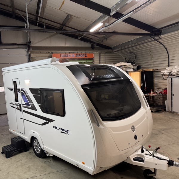 Een Telair Clima E-Van 5400H geplaatst op een Sprite Alpine Sport 370 EK met bouwjaar 2023.