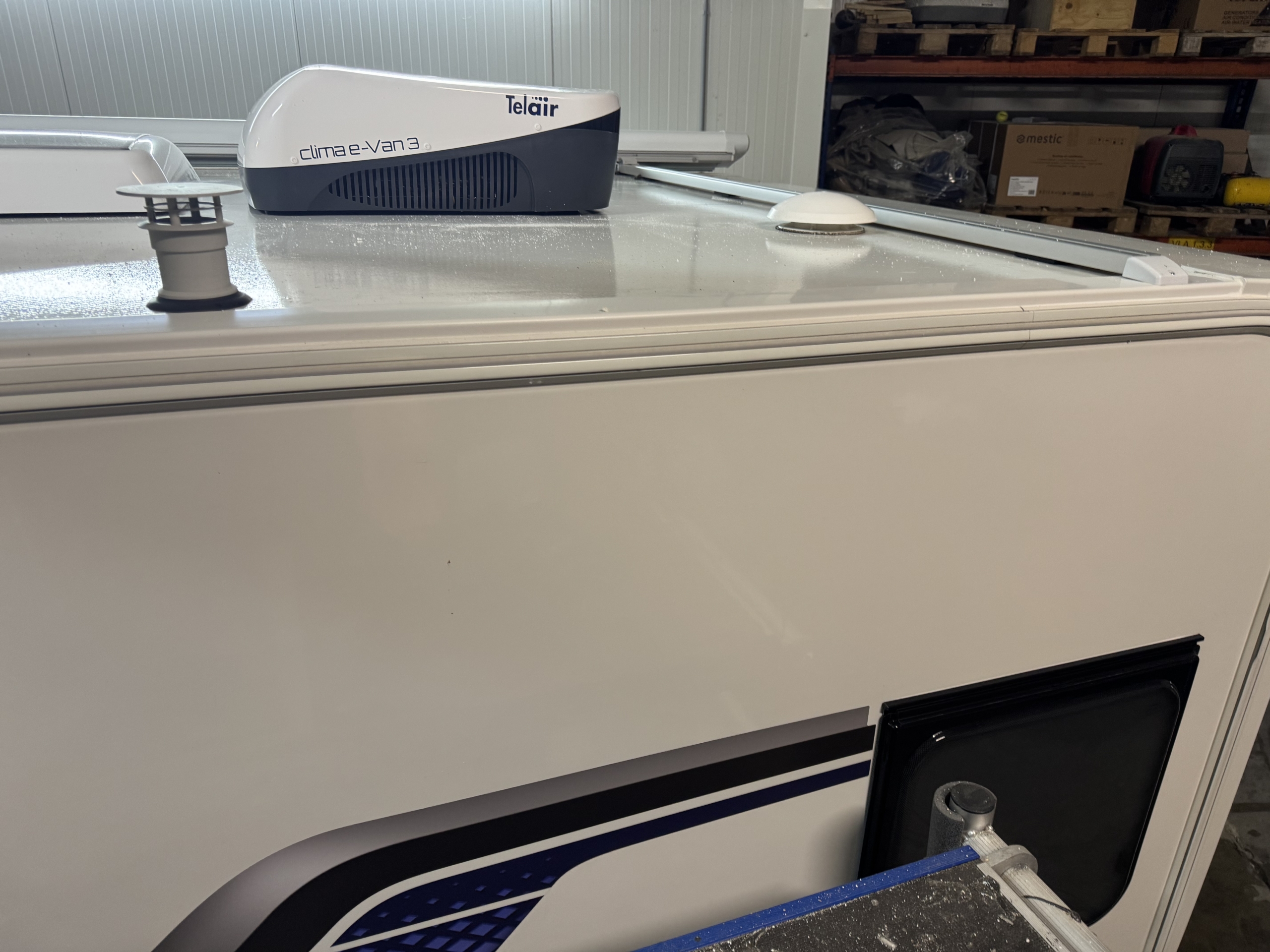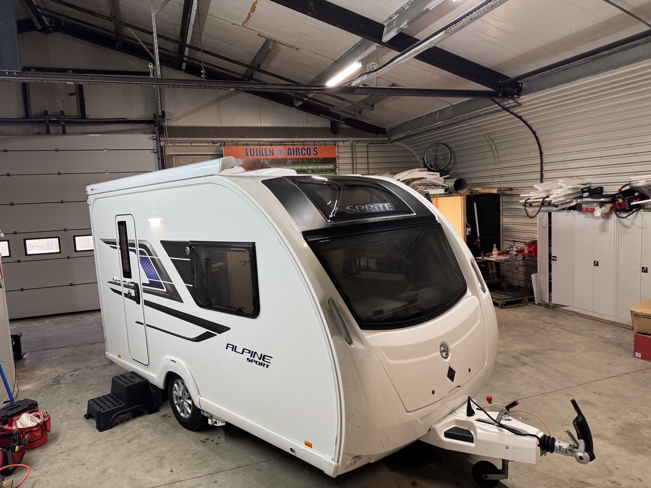 Een Telair Clima E-Van 5400H geplaatst op een Sprite Alpine Sport 370 EK met bouwjaar 2023.