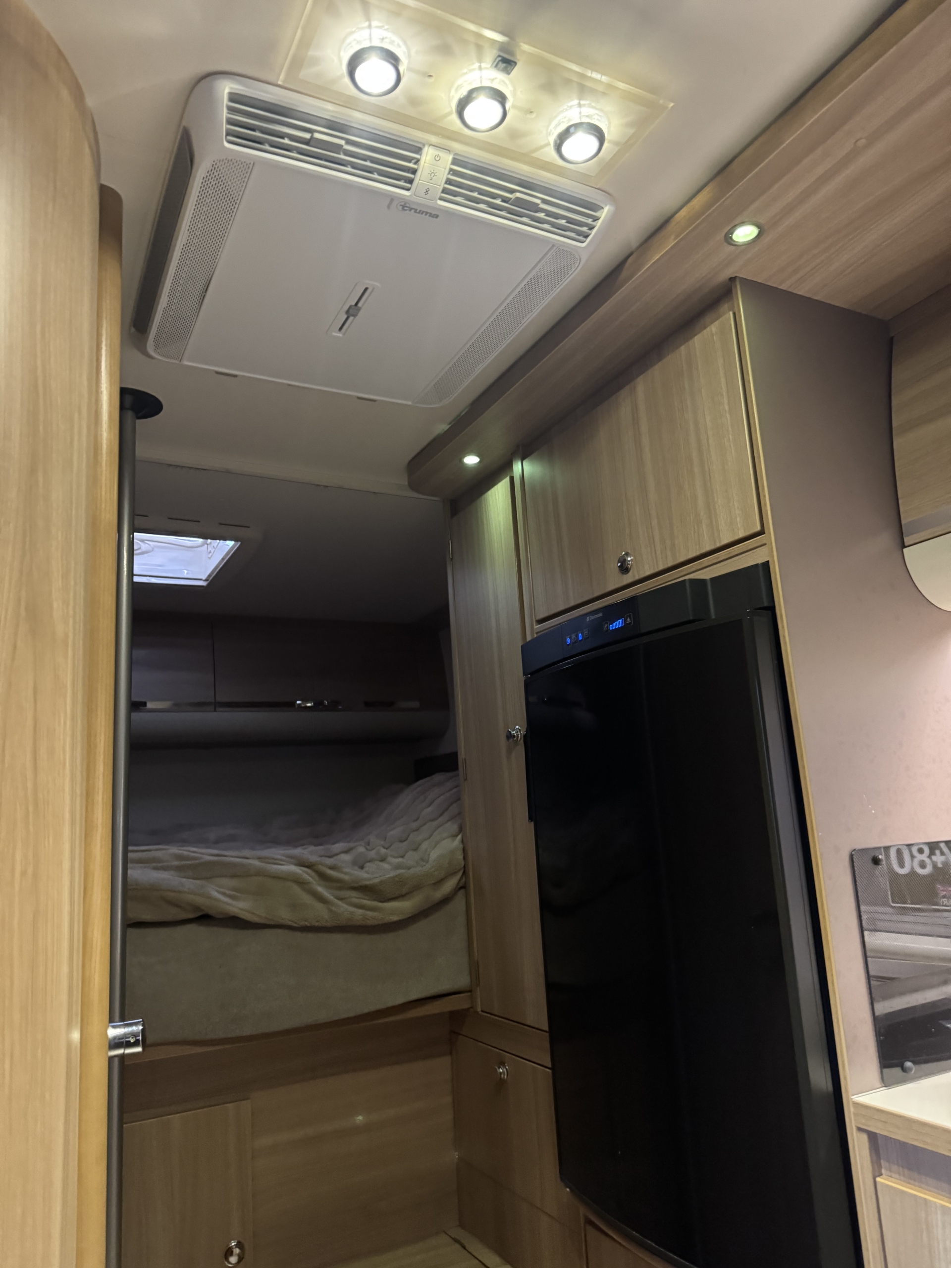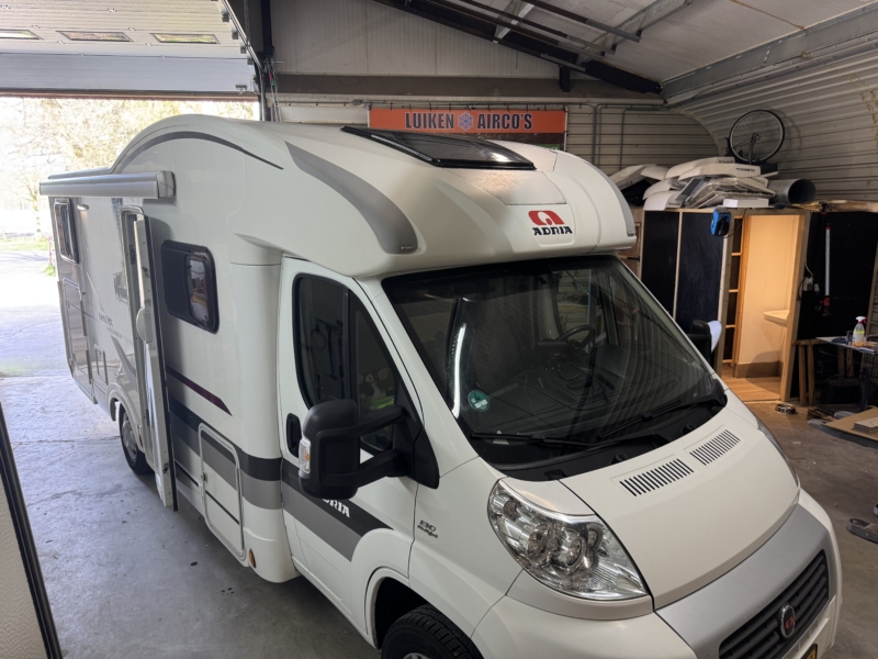 Een Truma Aventa Comfort 2G geplaatst op een Adria Matrix Axess M680SP. Het dakraam in het gangpad vervangen voor de dakairco.