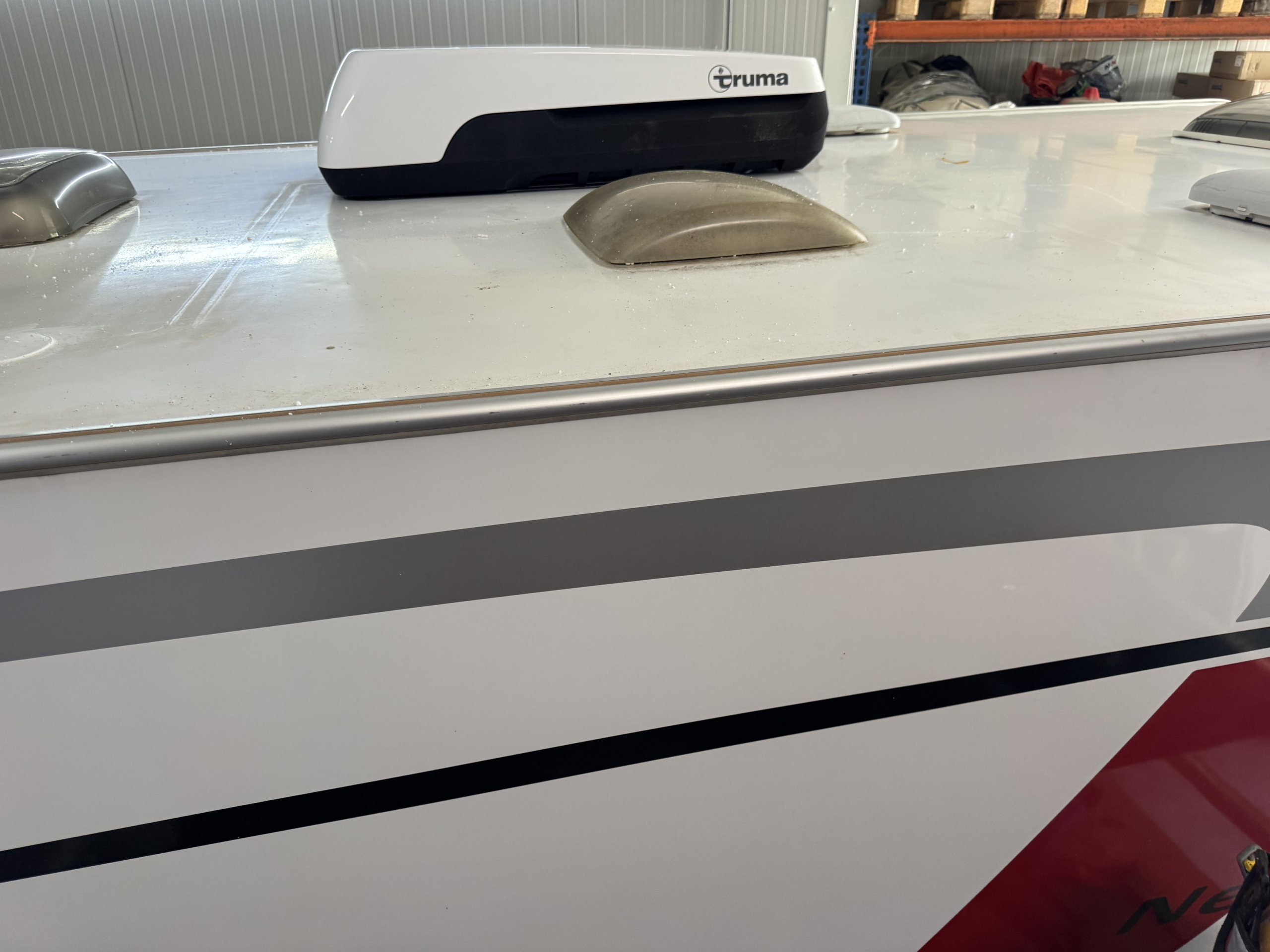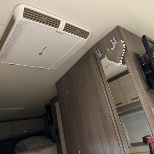 Een Truma Aventa Comfort 2G geplaatst op een Bürstner Nexxo Time T670. Nagenoeg in het midden van de camper een nieuwe opening aangebracht.