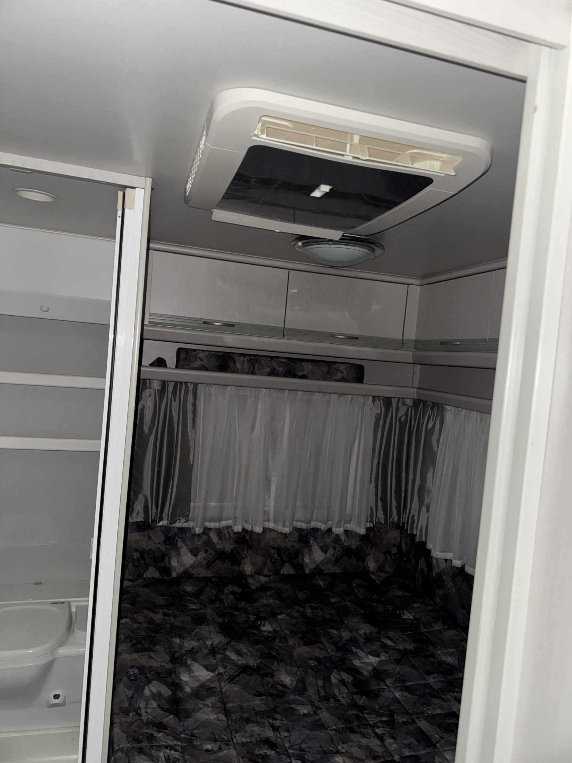 Een Mestic RTA 2500L geplaatst op een Knaus Sudwind. Het achterste dakraam uitgewisseld voor deze dakairco.