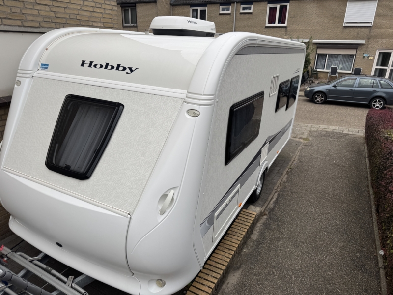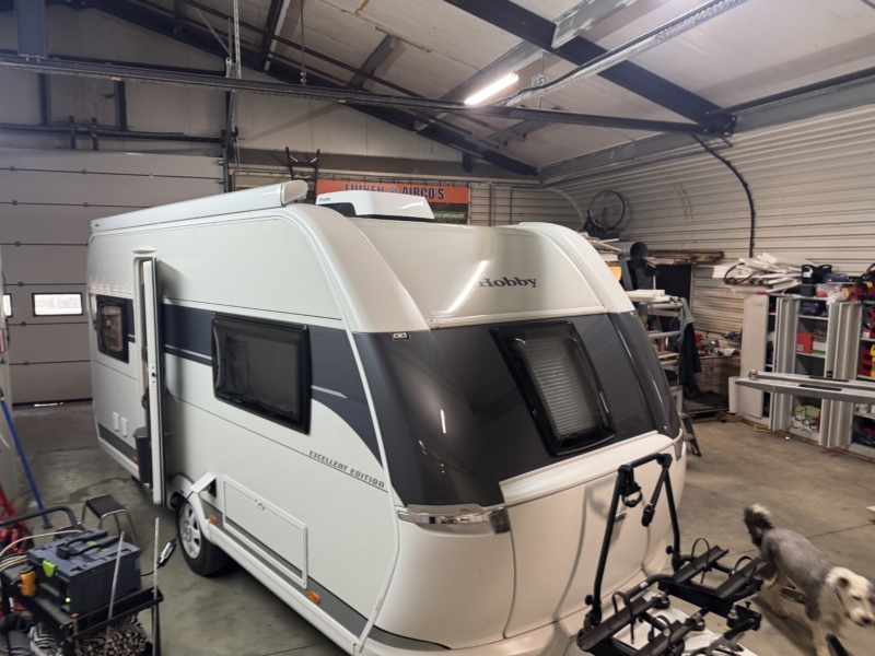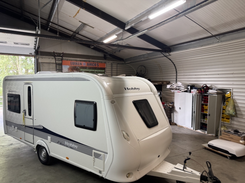 Telair Dualklima 8400HEen Telair Dualklima 8400H geplaatst op een Hobby 495 Excellent caravan uit 2012.Achter het grote dakraam een nieuwe opening aangebracht en verstevigd met een houten frame. Klant had teveel kogeldruk. Daarom gekozen om de airco achter de as te plaatsen. Airco is gezet in de werkplaats van Luiken Airco’s.