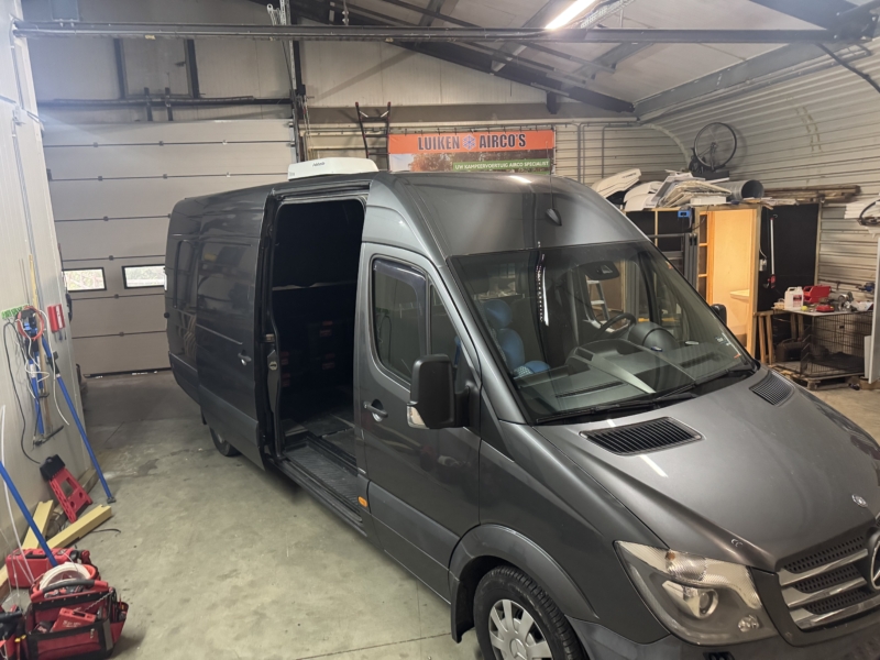 Webasto Cool Top Trail 24Een Webasto Cool Top Trail 24 geplaatst op een Mercedes Benz Sprinter. In het midden van de bus een nieuwe opening aangebracht. Bus wordt nog verder omgebouwd naar camper. Airco is gezet in de werkplaats van Luiken Airco’s.