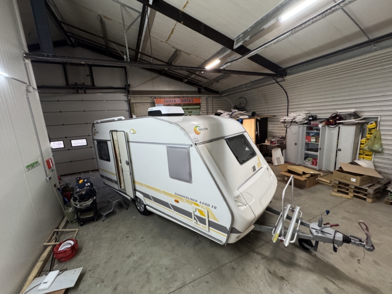 Een Truma Aventa Compact Plus 2G Geplaatst op een Delta Summerline 4400 FB.Het voorste dakraam verwijderd en hiervoor de modulerende compressor airco voor terug gezet. Klant heeft gekozen van het Premium (met verlichting) Stone (grijs) binnenkader. Airco is gezet in de werkplaats van Luiken Airco’s te Veldhoven.